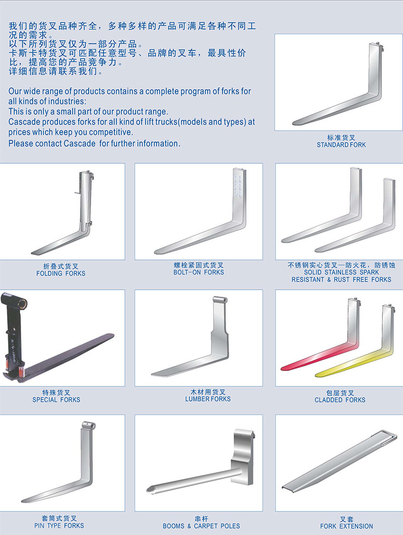 卡斯卡特貨叉(Forks)_叉車配件_配件供應(yīng)中心_產(chǎn)品中心_廈門永新昌機械設(shè)備有限公司